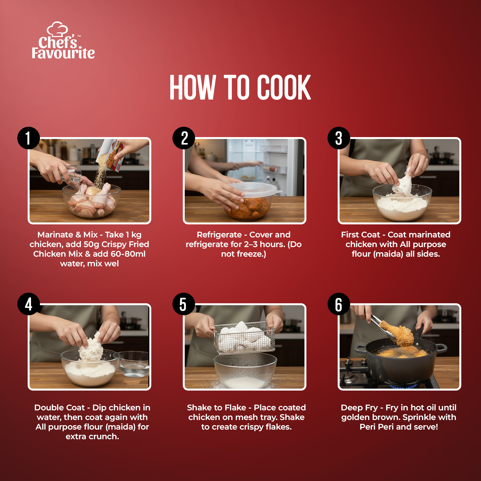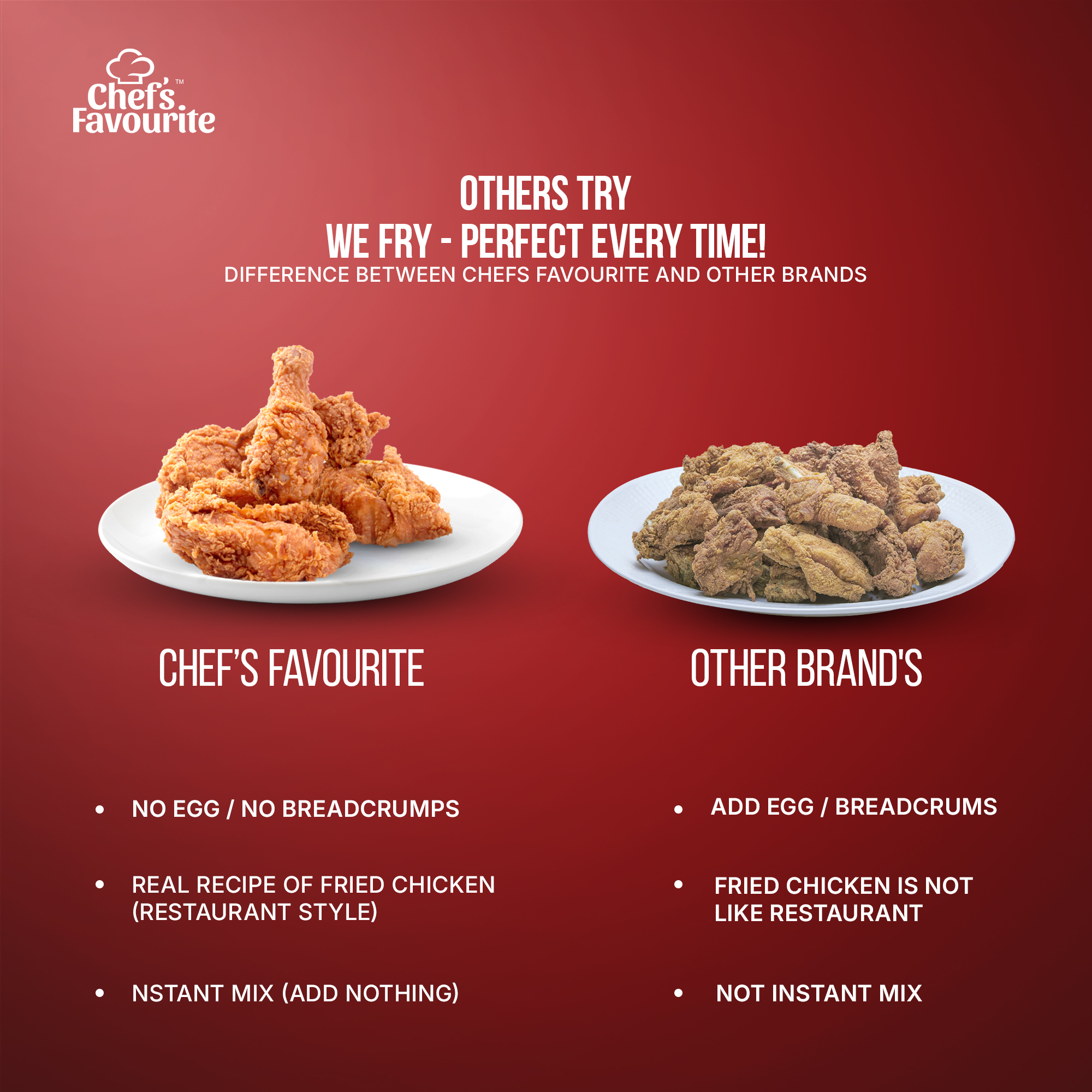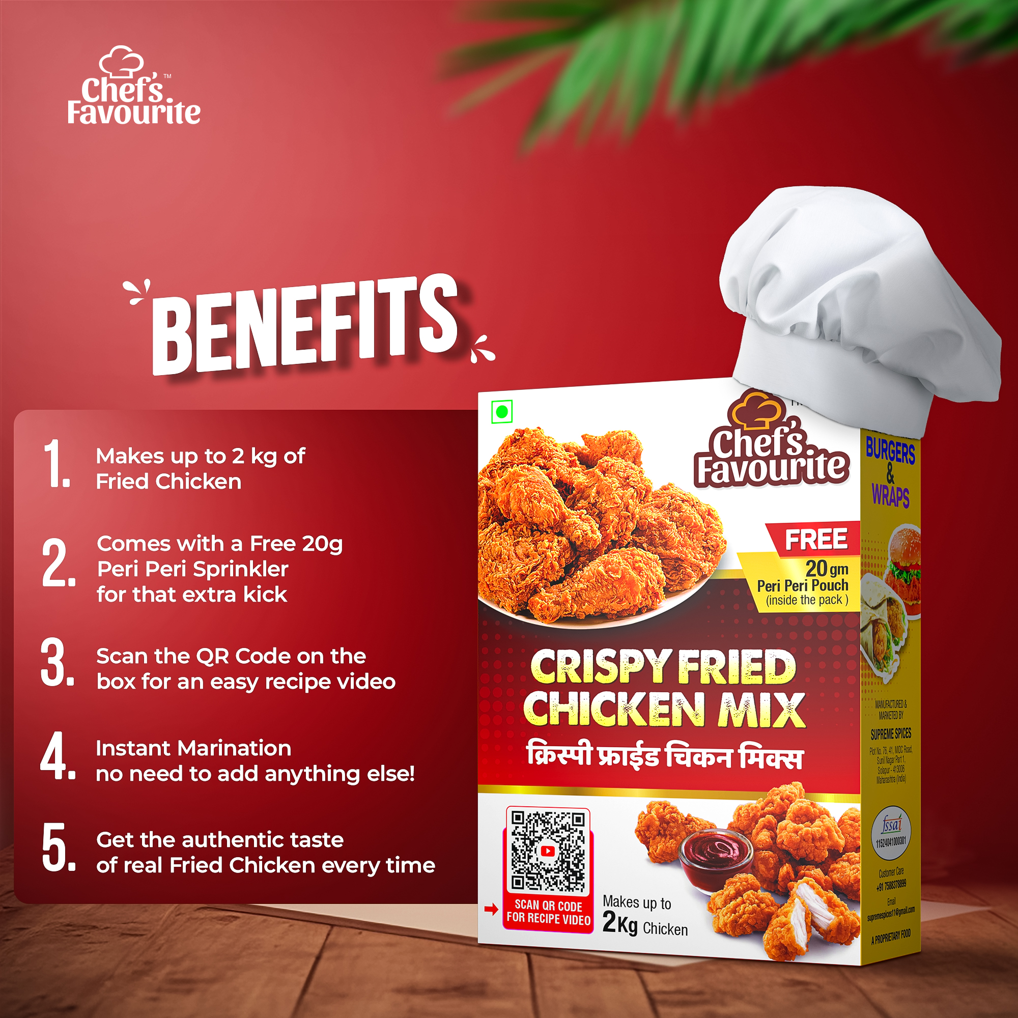 Enjoy perfect crispy, delicious fried chicken at home with Chef’s Favourite Crispy Fried Chicken Mix! This instant marinade blend promises authentic taste with the perfect blend of spices, delivering each bite a mouthwatering crunch. Whether your fried chicken is for a family meal or special gatherings, this seasoning makes it truly restaurant-quality.