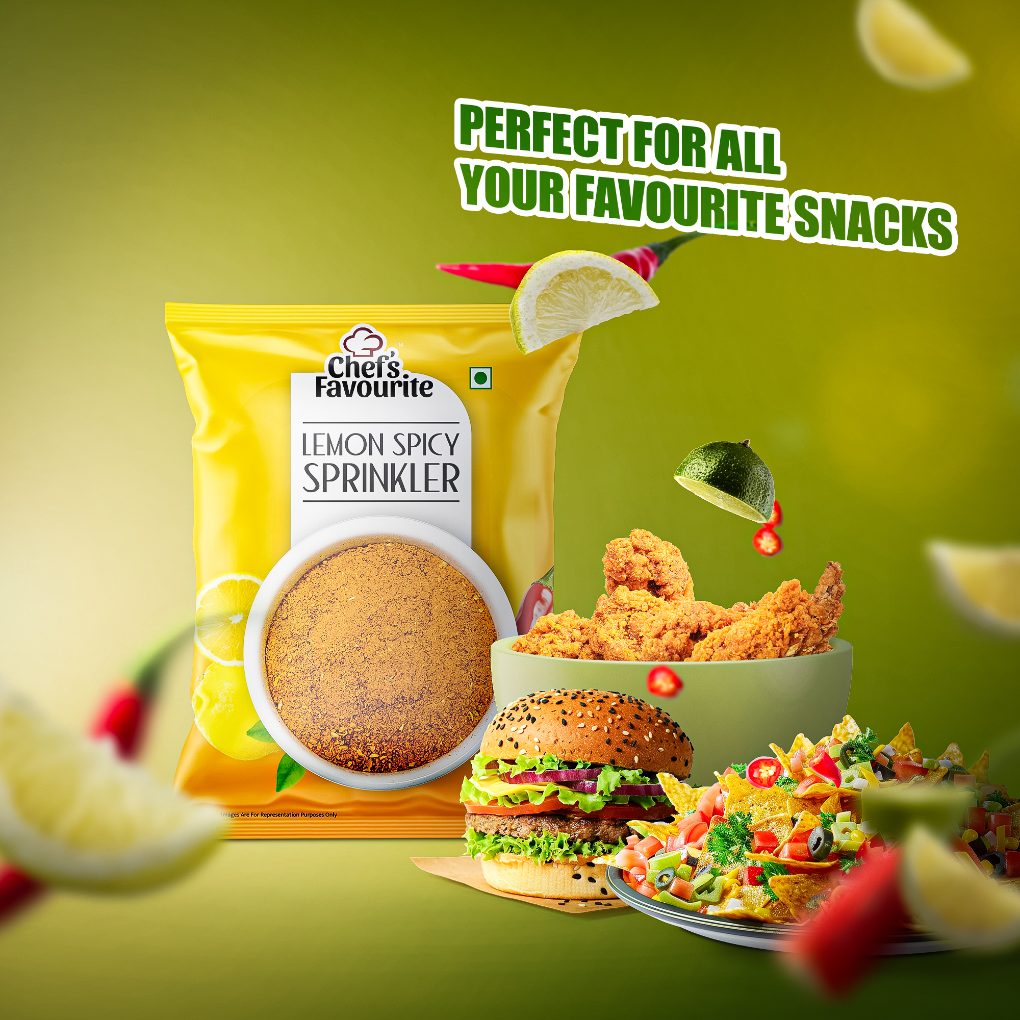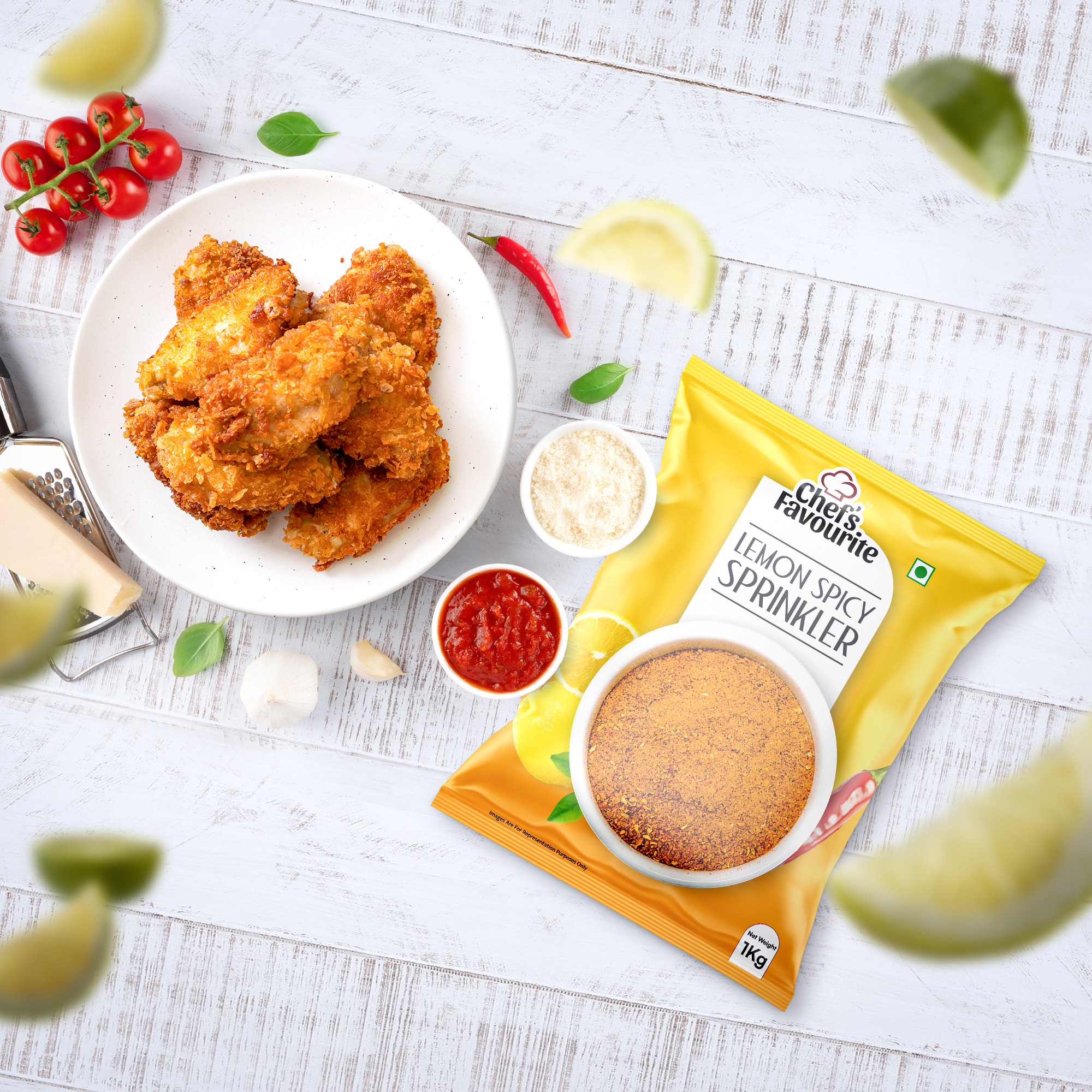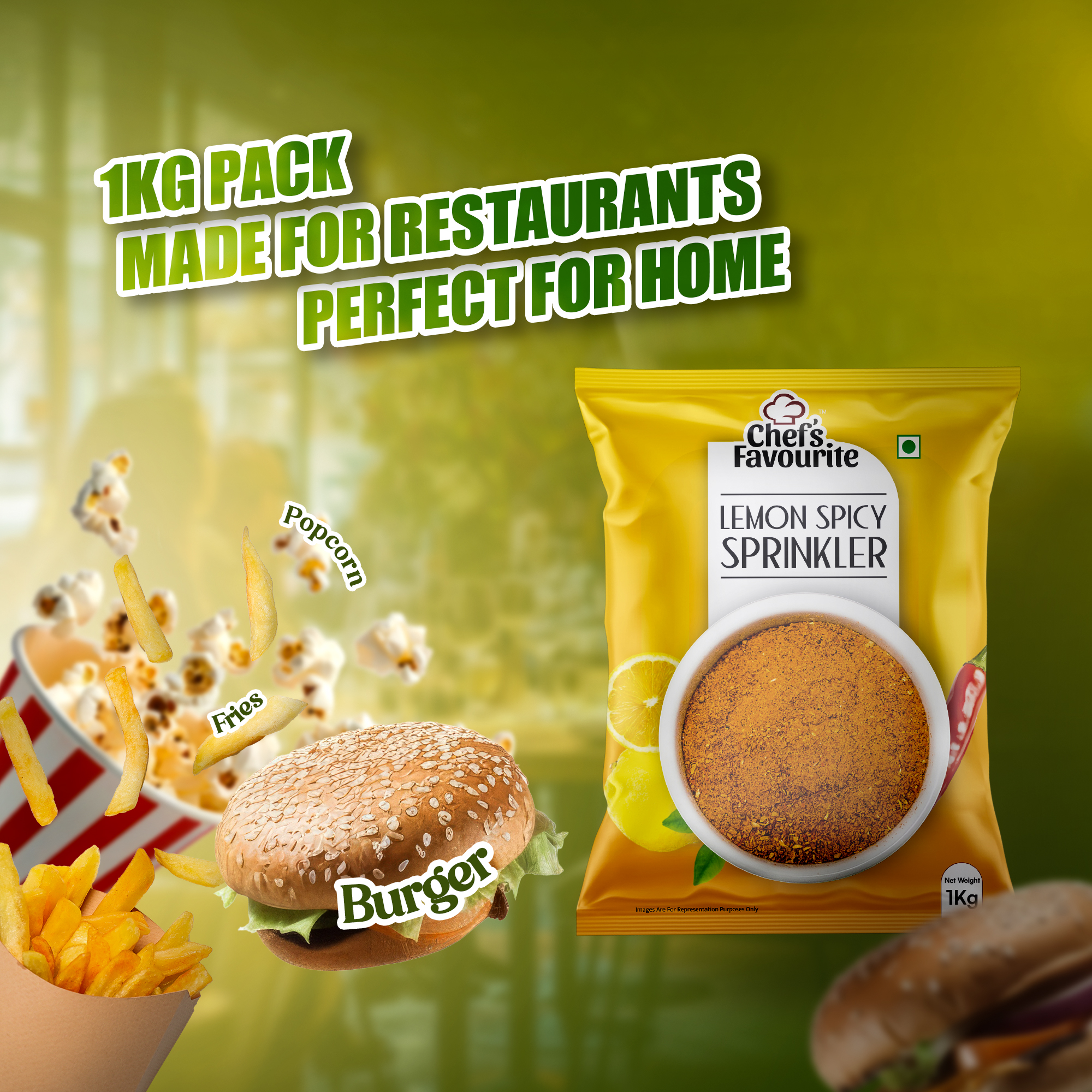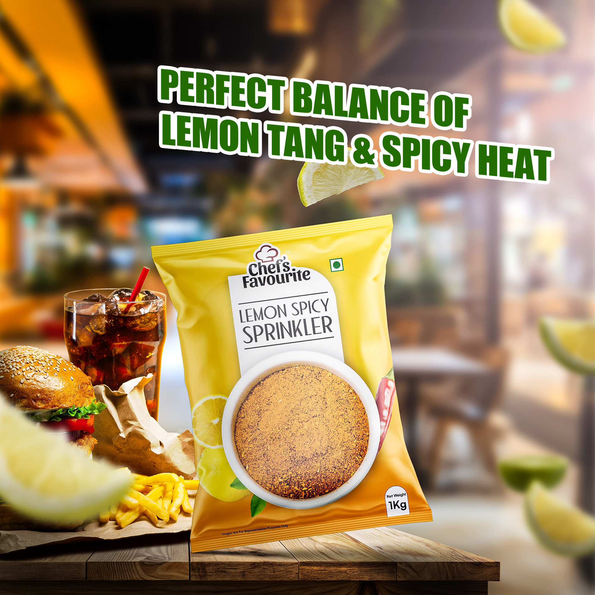 Chef’s Favourite Lemon Spicy Sprinkler (1kg Pack) is the perfect seasoning for restaurants wanting to add a bold, zesty kick to their dishes. Combining tangy lemon with fiery spices, this unique blend enhances fried chicken, fries, seafood, and more. Plus, its large pack ensures cost-effective use in high-demand kitchens. With a 9 month shelf life and FSSAI certification, it guarantees quality and freshness. Elevate your menu effortlessly—just sprinkle and enjoy an explosion of flavor!